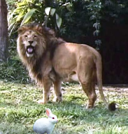Um coelho ficaria perto de um leão na selva por poucos instantes!