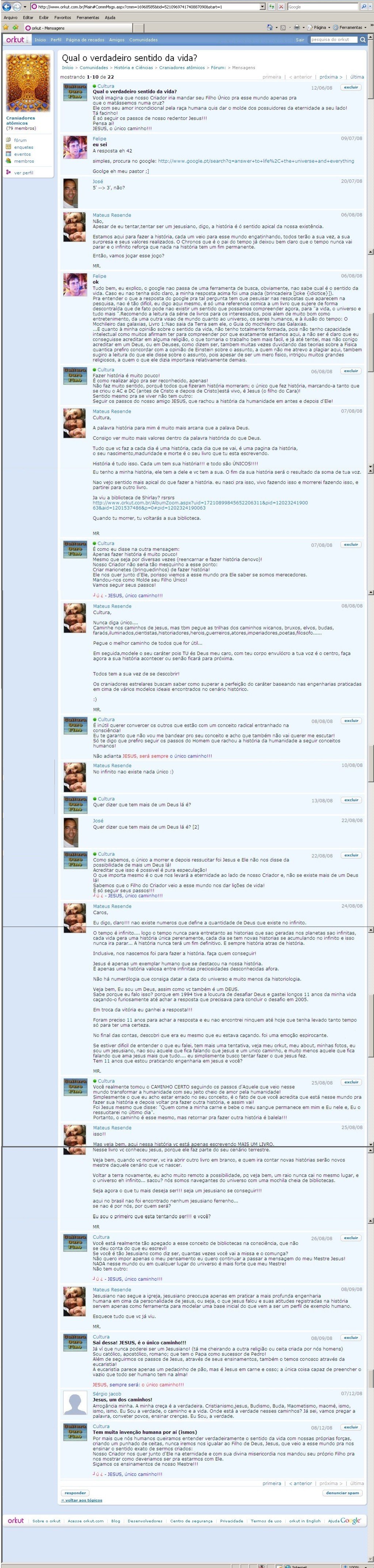 sobre o sentido da vida, apresentados por internautas em um Fórum criado